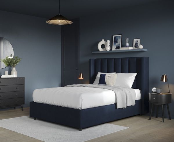 With a colour palette that works perfectly in a range of interior décor themes, the Annabelle bedframe is upholstered in a beautiful velvet fabric. Available in two contemporary colours, Deep Blue or Grey, this bed frame is available in 3 sizes – double bed, king size bed, and super king size bed.