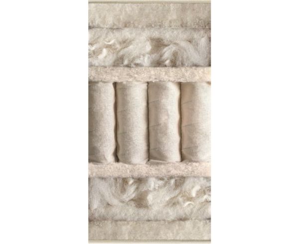 Sourced from the lush landscapes of North Devon and Somerset, wool from the Exmoor Horn sheep is known for its exceptional softness, breathability, and resilience. This locally obtained wool enhances the mattress’s comfort and contributes to supporting regional communities and eco-friendly practices.